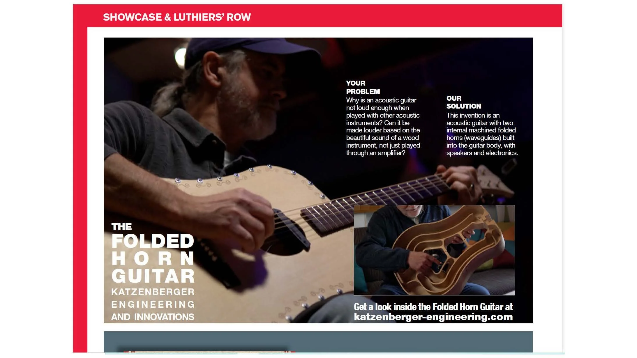 Folded Horns have been used successfully in high end audio systems for many decades. Nobody figured out how to put them in acoustic guitars, until now. They provide very high efficiency, low distortion and wide dynamic range. They are a perfect way to increase the power in an acoustic guitar, and actually improve the beautiful tone.